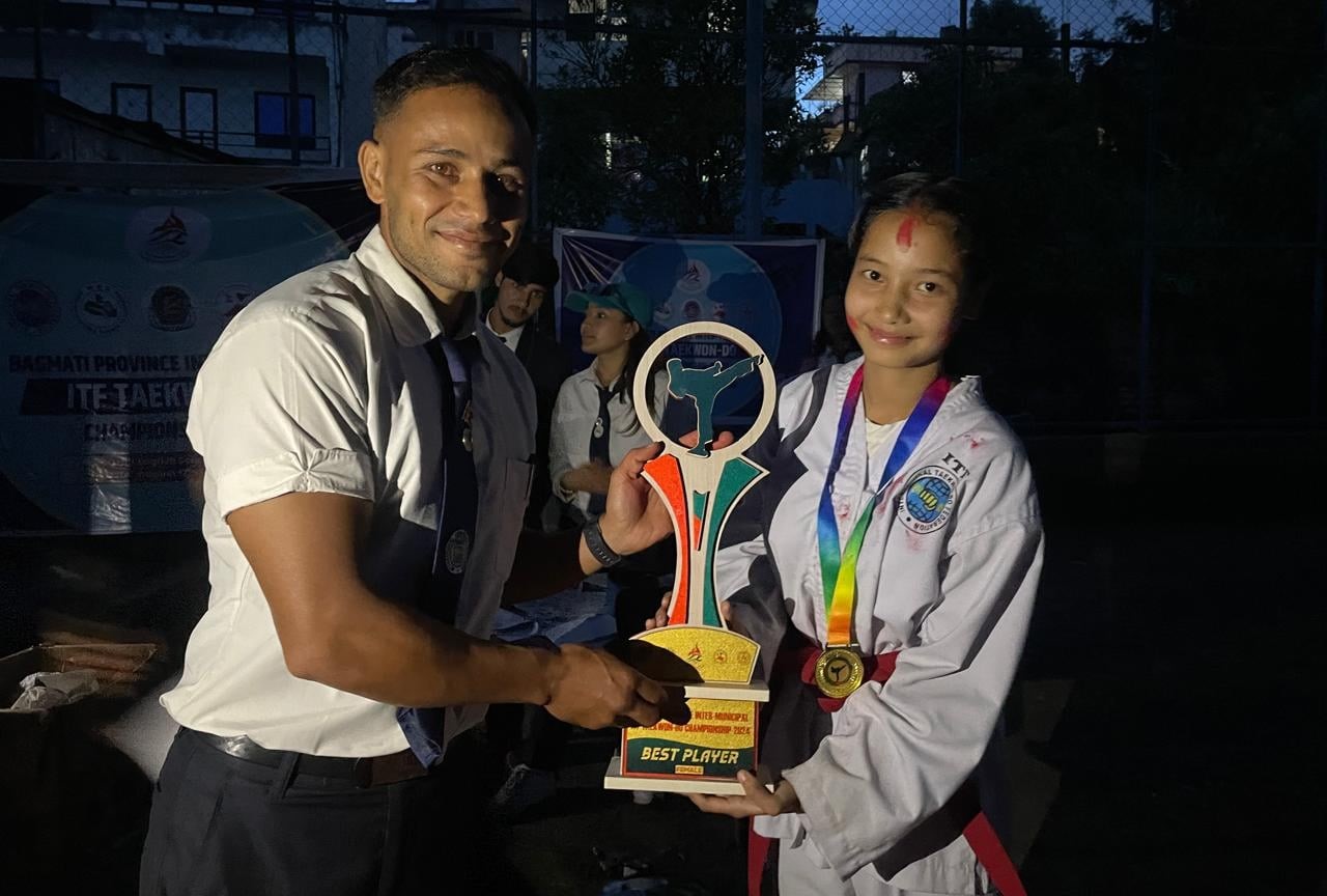 उनले महिला २६–३० केजी तौलसमूहका फाइनलमा भक्तपुरकी आकृति नेपाललाई हराउँदै सफलता पाएकी हुन्। ललितपुरकी रञ्जिता भुजेल र ललितपुरकी एन्जल खड्कीले कांस्य पदक प्राप्त गरे। कुल ११ नगरपालिकाका ३२० खेलाडीले चुनौती प्रस्तुत गरेको प्रतियोगिता संयोजक तथा भक्तपुर आइटिएफ तेक्वान्दोका अध्यक्ष आशिष कार्कीले जानकारी दिए। महिलामा ५ र पु?षमा ६ तौलसमूहमा प्रतिस्पर्धा भएको थियो। प्याटर्नमा पहेंलो, हरियो, नीलो र रातो पेटीमा प्रतिस्पर्धा भएको थियो। प्रतियोगितमा शीर्ष तीन स्थानका टोलीले ट्रफी पाए। उत्कृष्ट महिला र पुरुष खेलाडीलाई पनि ट्रफी प्रदान गरिएको थियो। विजेतालाई सूर्यविनायक नगरपालिकाकी उपप्रमुख सरिता तिम्सिना भट्टराई, अर्बिट इङ्लिस स्कुलका यज्ञराज पौडेल र भक्तपुर आइटिएफ जिल्ला आइटिएफ संघका अध्यक्ष आशिष कार्कीलगायतले पुरस्कृत गरे।