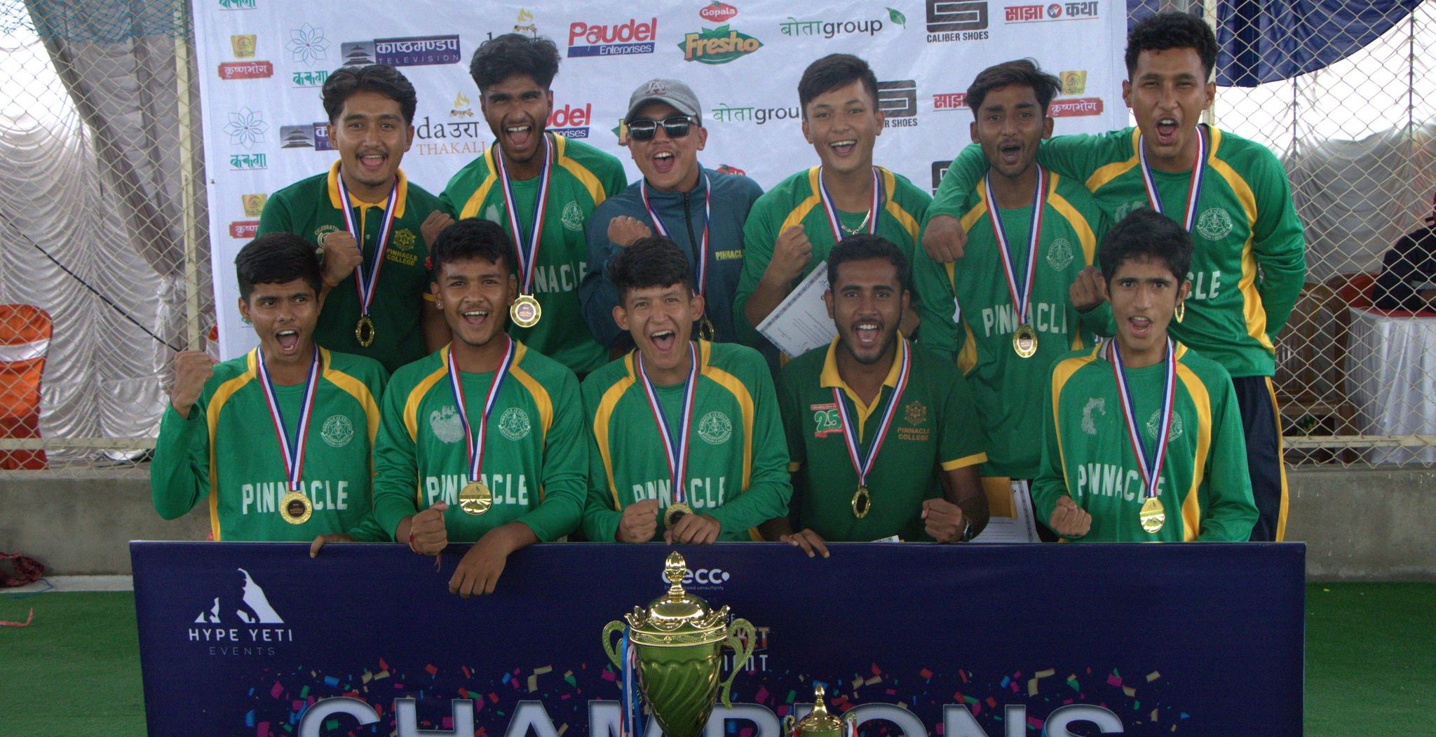 भदाै ८, काठमाडाैँ । एईसीसी प्रथम इन्टर कलेज इन्डोर क्रिकेट प्रतियोगिताको उपाधि पिनाकल एकेडेमीले जितेको छ। हाइप यति इभेन्ट्सको आयोजनामा सम्पन्न प्रतियोगिताको फाइनलमा पिनाकलले हिमालयन व्हाइट हाउसलाई ४ रनले पराजित गर्यो।
