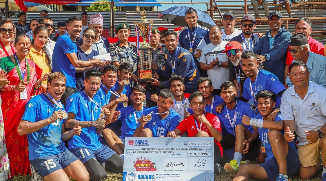 नव आदर्श सामुदायिक विकास समाजले आफ्नो वार्षिकोत्सव तथा हरितालिका तीजको अवसरमा लामाचौर कप राष्ट्रिय भलिबल च्याम्पियनसिपको आयोजना गरेको थियो । शुक्रबार फाइनल खेल खराब प्रकाश ९लाइट प्रोटेस्ट० का कारण १–१ सेटको बराबरीमा रोकिएपछि शनिबार खेलाइएको थियो।