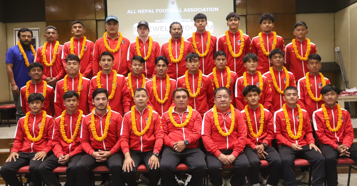 काठमाडौं । अक्टोबर २३ देखि २७ सम्म हुने एएफसी यू–१७ एसियन कप छनोट प्रतियोगितामा सहभागी हुने नेपाली राष्ट्रिय फुटबल टोलीको विदाइ भएको छ।