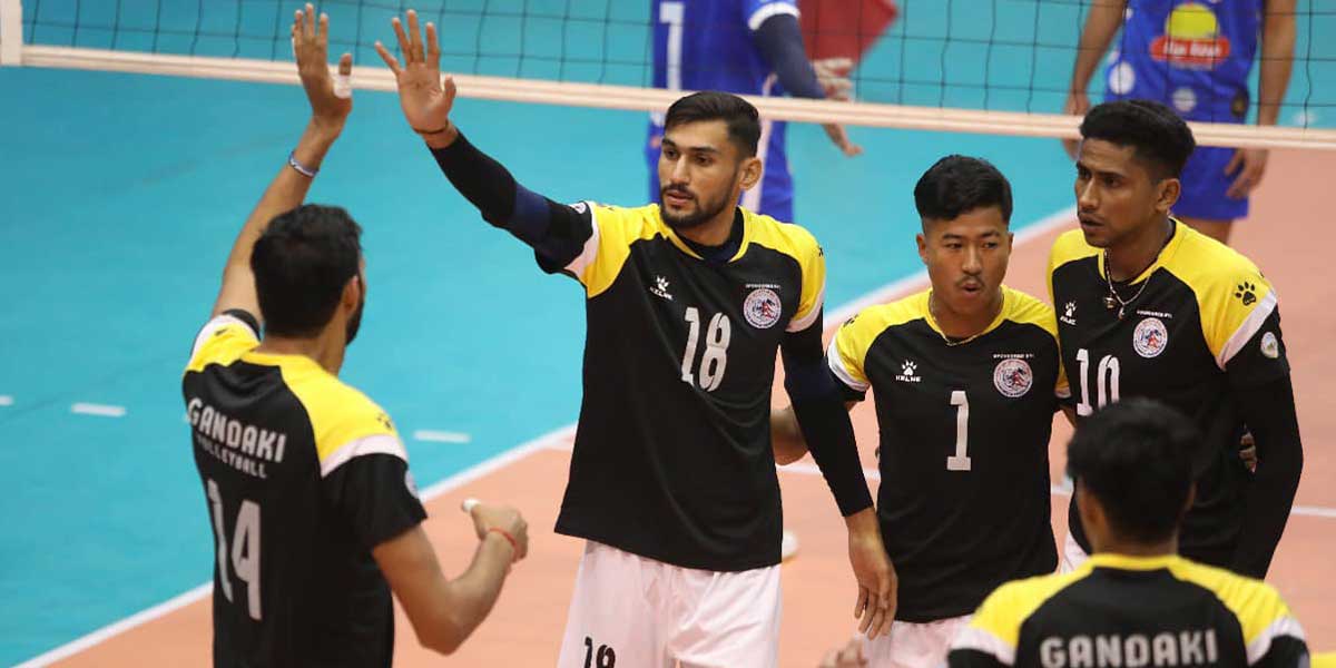 सुरुआती दुई २८–२६, २५–२३ ले आफ्नो पक्षमा पारेको गण्डकीले त्यसपछि लगातार तीन सेट २१–२५, २२–२५ , १५–२५ ले गुमायो।