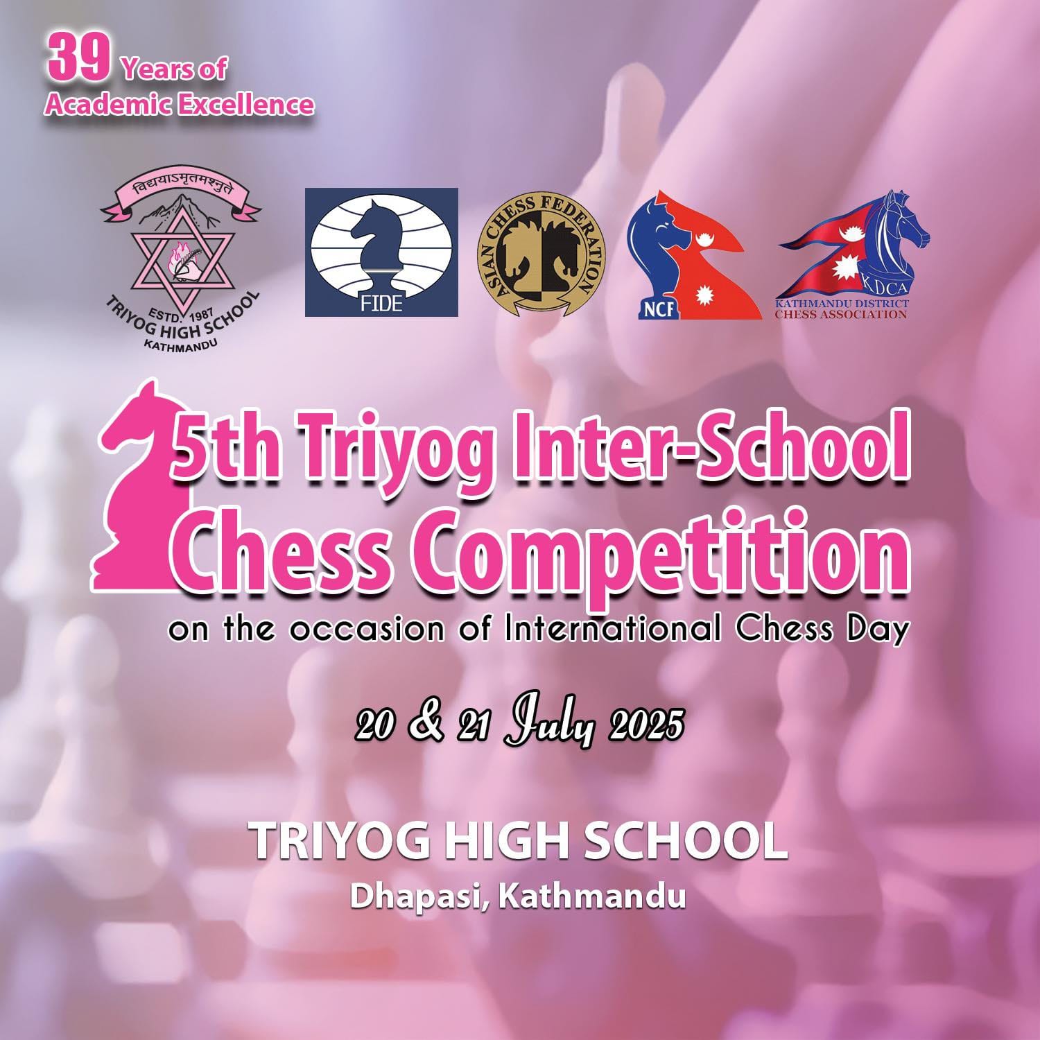 काठमाडाैँ। त्रियोग हाई स्कुलको आयोजनामा पाँचौँ त्रियोग अन्तर स्कुल चेस प्रतियोगिता आइतबार सुरु हुँदै छ।