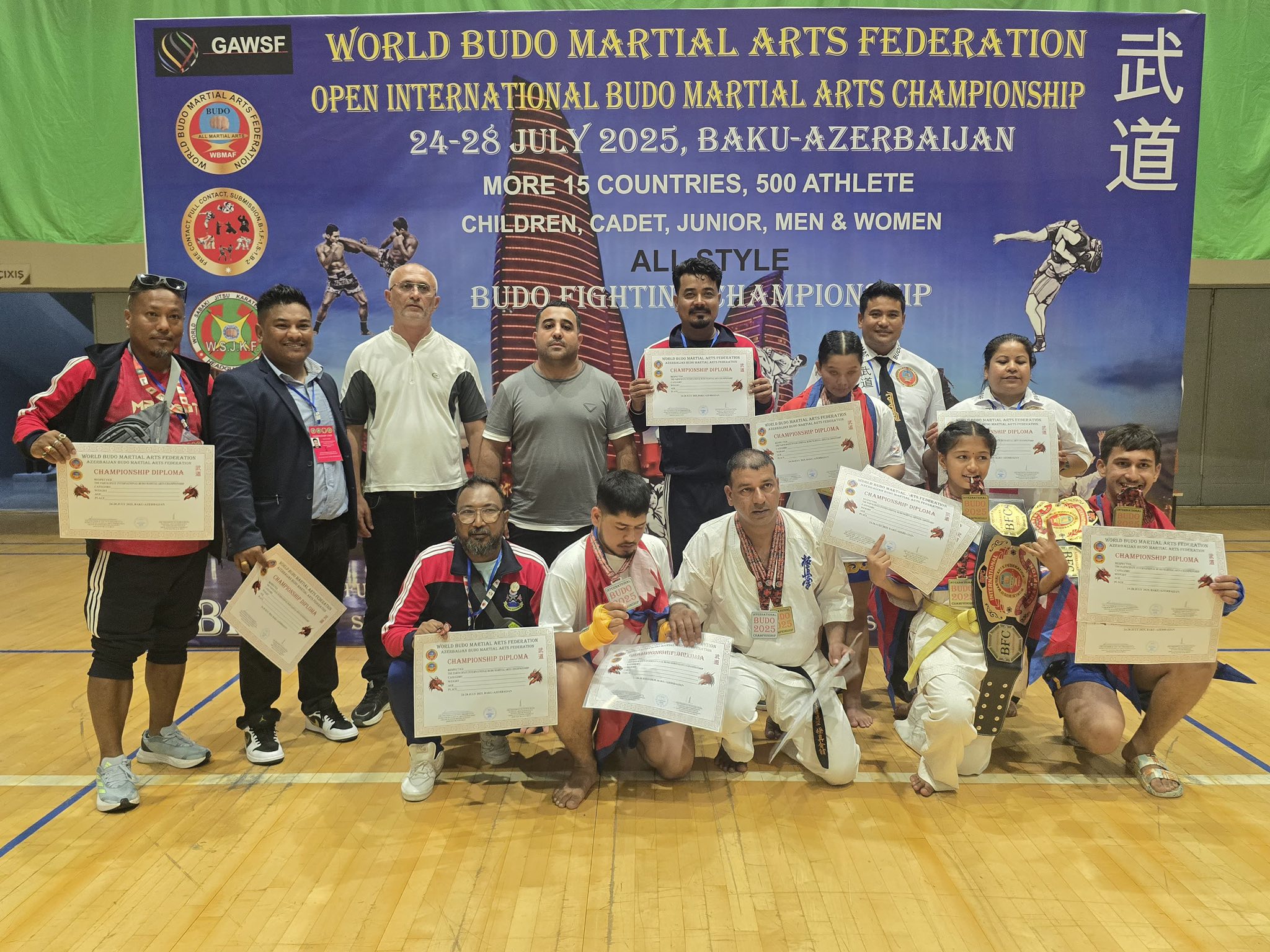 अजरवैजानको बाकुमा साउन ८ देखि १२ गतेसम्म भएको प्रतियोगिताको महिला ४० केजीमा पूजा खड्का, महिला ५५ केजीमा बविता कार्की र पुरुष ७० केजीमा रोचक भारतीले दोहोरो स्वर्ण जितेको टोलीको प्रशिक्षकसमेत रहेका नेपाल बुदोकैदो फुल कन्ट्याक्ट संघका अध्यक्ष वीरकृष्ण महर्जनले जनाएका छन्।