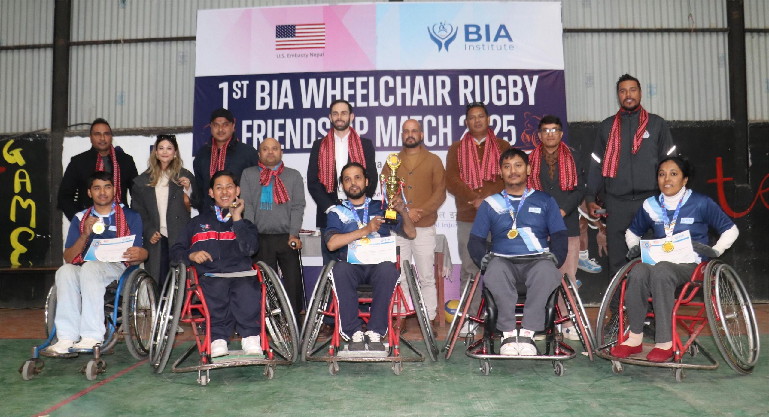 काठमाडौँ। आयोजक बिआइए इन्स्टिच्युटले नेपालमै पहिलोपटक आयोजना भएको ह्वीलचेयर रग्बी मैत्रीपूर्ण प्रतियोगिताको उपाधि जितेको छ।