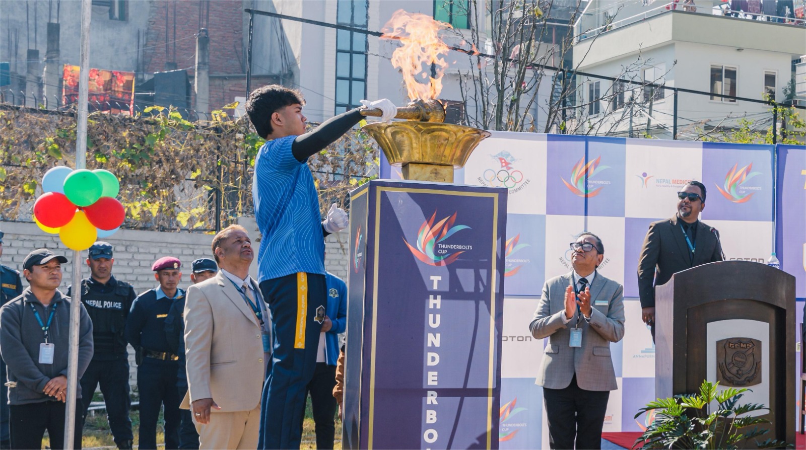प्रतियोगिताको समुद्घाटन समारोहमा जेम्स विद्यालयका संस्थापक अध्यक्ष राजेश खड्का, थन्डर बोल्ट्स डेभलप्मेन्ट सेन्टरका निर्देशक बरुण खड्का, नेपाल ओलम्पिक कमिटीका पूर्व अध्यक्ष विष्णुगोपाल श्रेष्ठ, ललितपुर महानगरपालिका शिक्षा विभागका निर्देशक देवी पौड्याल, नेपाल मेडिसिटी अस्पतालका प्रमुख कार्यकारी अधिकृत डा. अमित कुमार