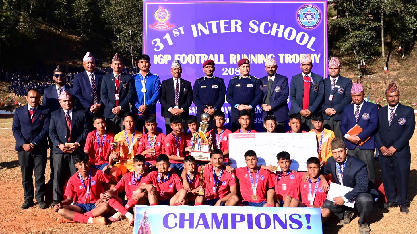 काठमाडौं। नेपाल पुलिस स्कुल साँगामा सञ्चालित ३१औं अन्तर विद्यालय आइजीपी फुटबल रनिङ ट्रफी प्रतियोगिताको उपाधि पुलिस स्कुल साँगा रातोले जितेको छ।