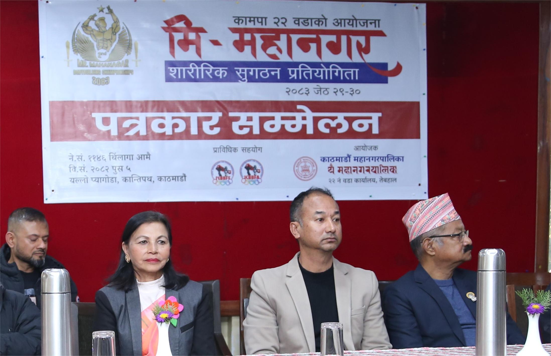 काठमाडौं महानगरपालिका वडा २२ को आयोजनामा दोस्रो मिस्टर महानगर शारीरिक सुगठन च्याम्पियनसिप आगामी जेठ २९ र ३० गते हुने भएको छ।