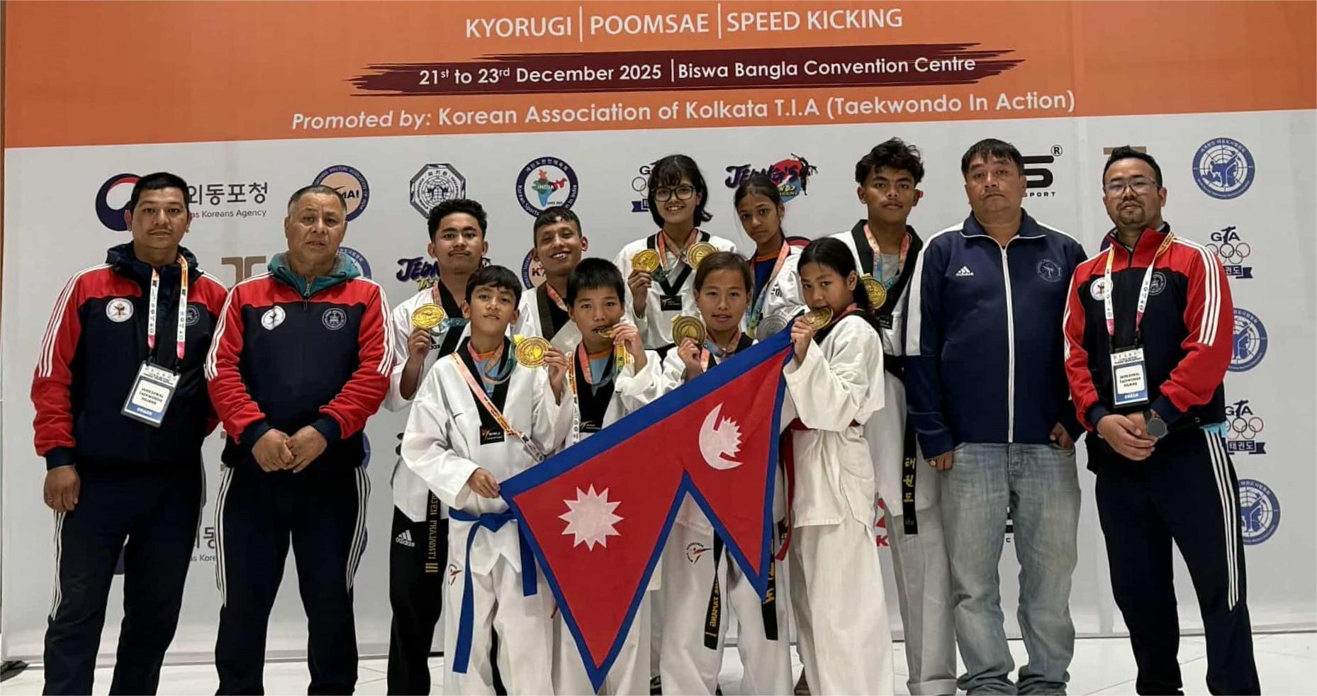 काठमाडाैँ। जैसीदेवल तेक्वान्दो डोजाङका खेलाडीले भारतको कोलकातामा भएको नवौं टीआईए खुला अन्तर्राष्ट्रिय तेक्वान्दो प्रतियोगितामा ९ स्वर्ण, १ रजत र १ कांस्य गरी ११ पदक जितेका छन्।