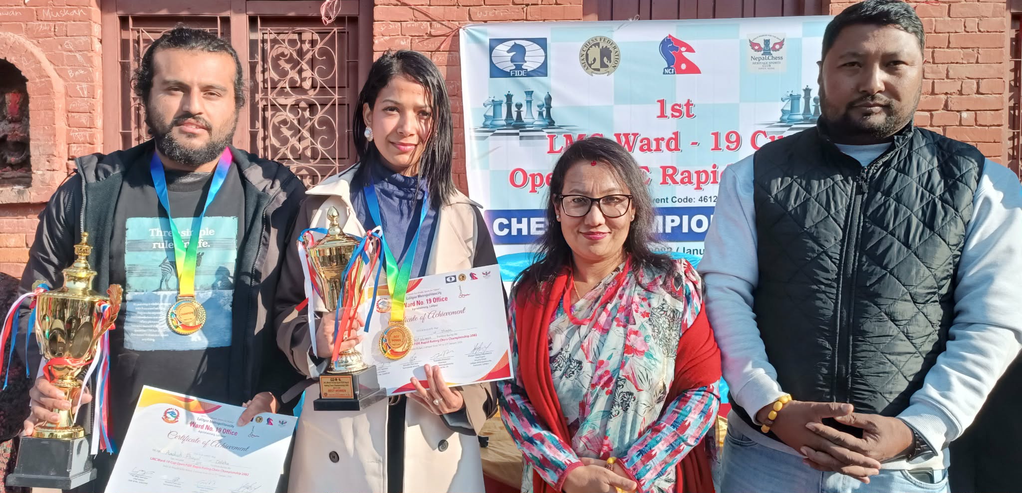 काठमाडौं। ललितपुर महानगरपालिका वडा नं १९ को आयोजनामा वडा कप खुल्ला रापिड रेटिङ बुद्धिचाल प्रतियोगिता शनिबार सम्पन्न भएको छ।