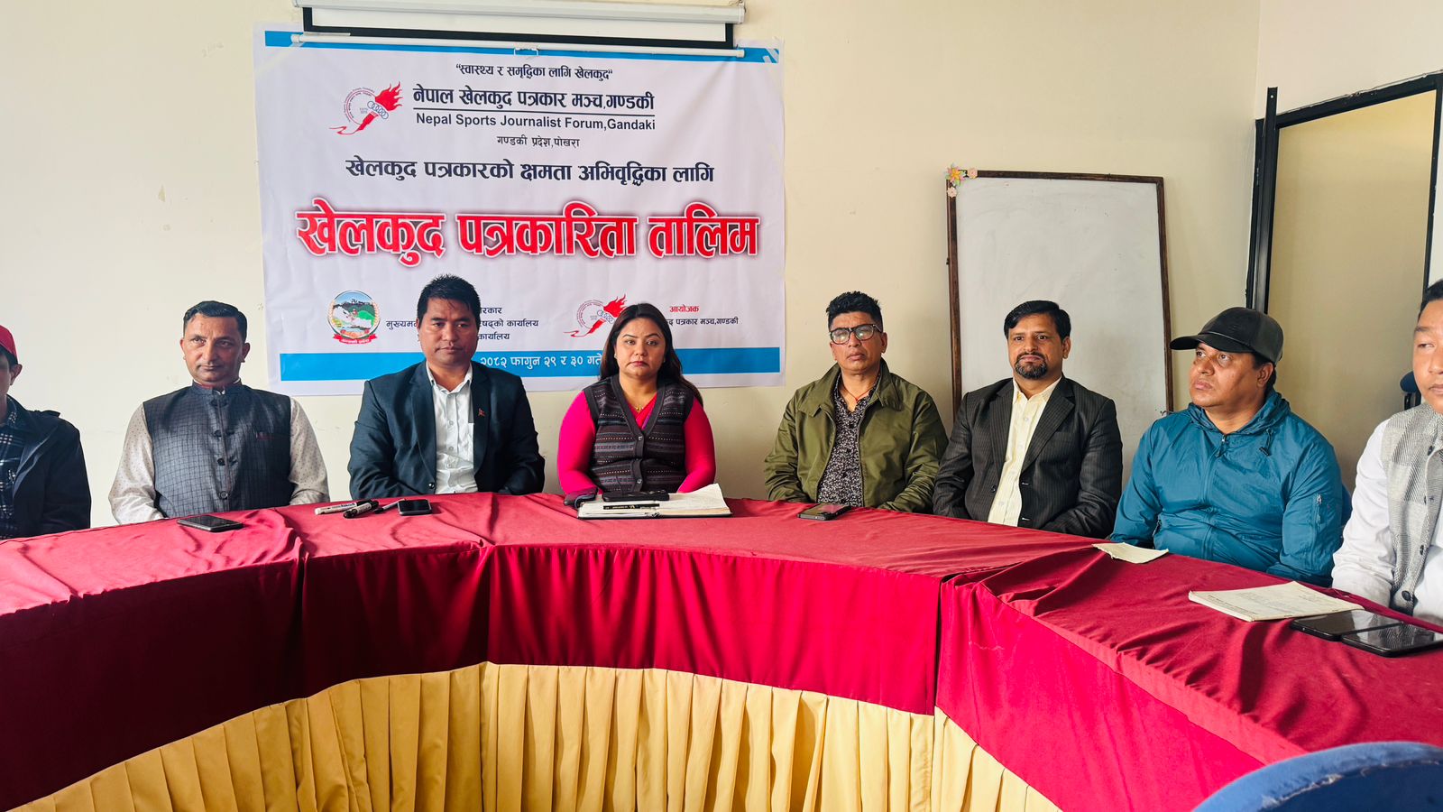 नेपाल खेलकुद पत्रकार मञ्च गण्डकीको आयोजना तथा प्रेस रजिष्ट्रारको कार्यालय गण्डकी प्रदेशको सहयोगमा तालिमको आयोजना भएको हो। पोखरामा रहेर काम गरिरहेका पत्रकारहरूलाई विभिन्न विधाका खेलका रिपोर्टिङ कसरी गर्ने र कस्ता नियम छन् भन्ने बारेमा प्रशिक्षण दिइएको थियो।